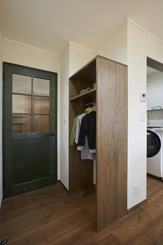 奥様が家事をしながらも家族の様子をうかがえること、家族それぞれの物を収納することを考えた間取りとなりました。