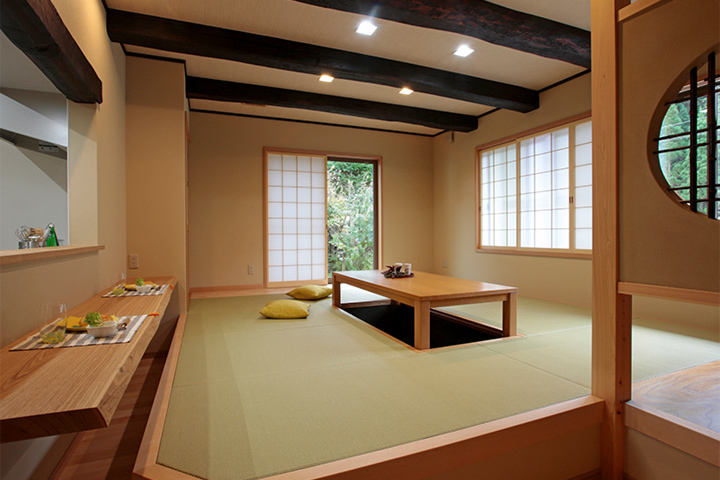 古材を活かした化粧梁で、落ち着いた雰囲気を創り出す事ができました。